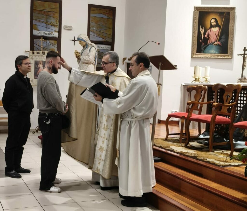 La liturgia ceremonial del Rito de Acceso al Catecumenado comenzaba a las 17h. Don Raúl Muelas llamaba a cada uno de los catecúmenos por su nombre y así ser presentados ante la comunidad cristiana reunida. Posteriormente les signaba a todos los catecúmenos en la frente.
