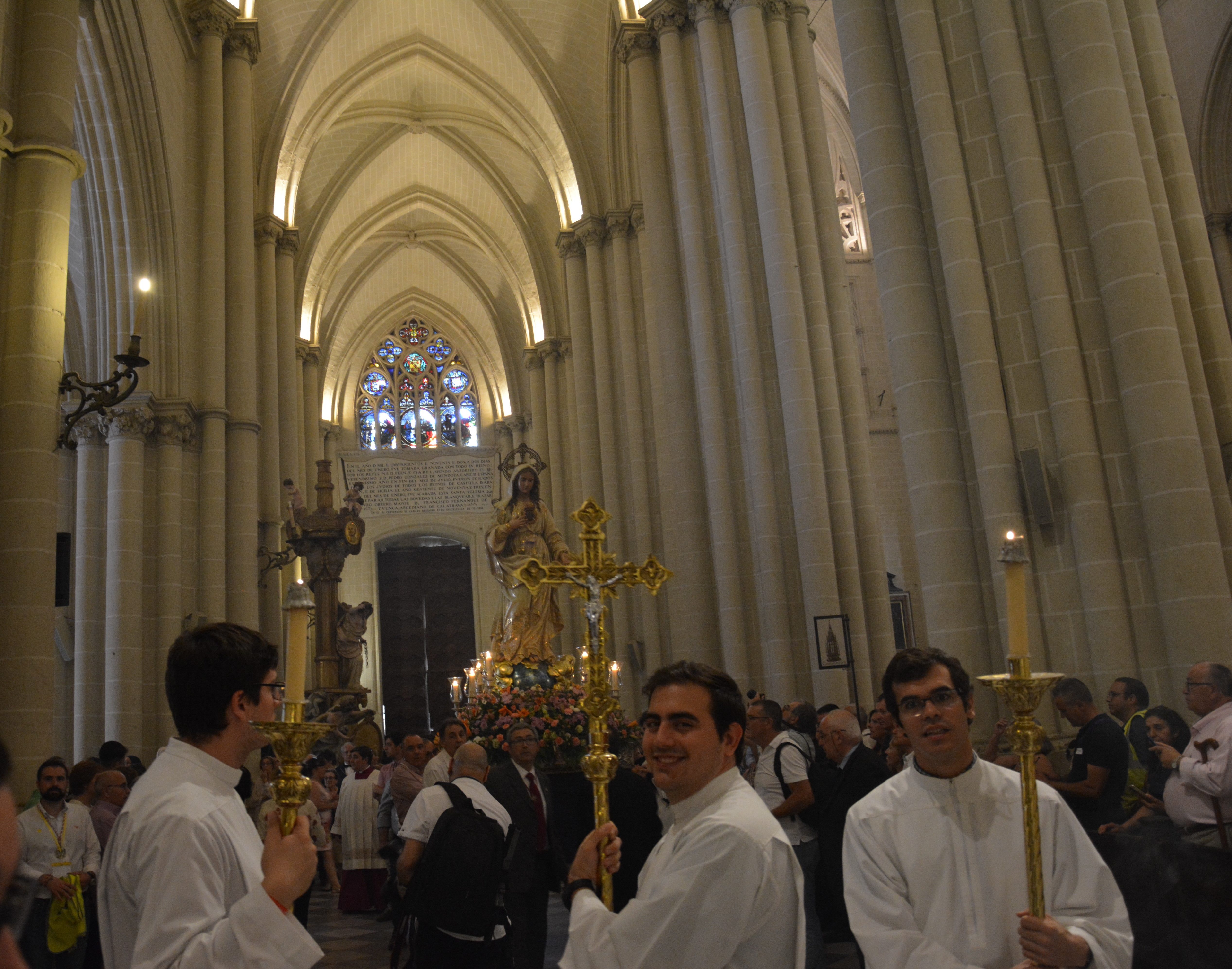 La Jornada “Dando Gracias” ha dado comienzo a las cinco la tarde con una multitudinaria procesión que partía del Santuario de los Sagrados Corazones, recorriendo las calles de Toledo, para llegar a la Catedral Primada. En esta solemne procesión, presidida por las imágenes de los Sagrados Corazones de Jesús y de María, han participado 4.000 fieles laicos de la Archidiócesis, así como miembros de vida consagrada, movimientos apostólicos y asociaciones de fieles y grupos, junto a los estandartes de 150 hermandades, cofradías, movimientos, parroquias, etc.