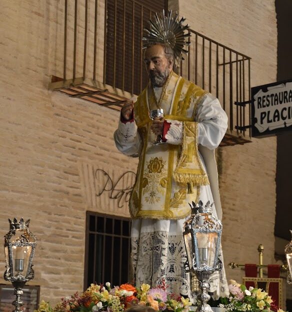 El propio escultor explica que desde el templo de El Salvador le pidieron una imagen “devota, que tuviese unción y que reflejase bondad en el rosto; además de poder ser una imagen que pudiese portar ornamentos sagrados y poder reflejar así el momento en que el santo italiano distribuía la sagrada comunión“.