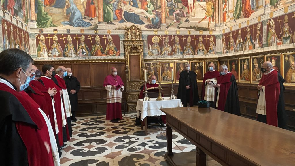 Desde allí se han dirigido al coro mayor, donde don Juan Pedro ha ocupado el sitial que le corresponde y ha tomado posesión de su oficio. En ese momento, el que hasta hoy ha sido presidente del cabildo, don Jaime León Gómez, ha recordado a sus antecesores y ha manifestado la disposición del cabildo para seguir prestando su servicio a la Iglesia y a la sociedad, conforme a la herencia recibida.