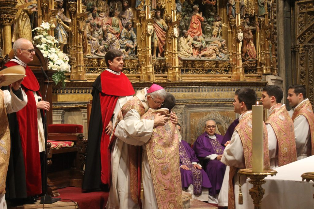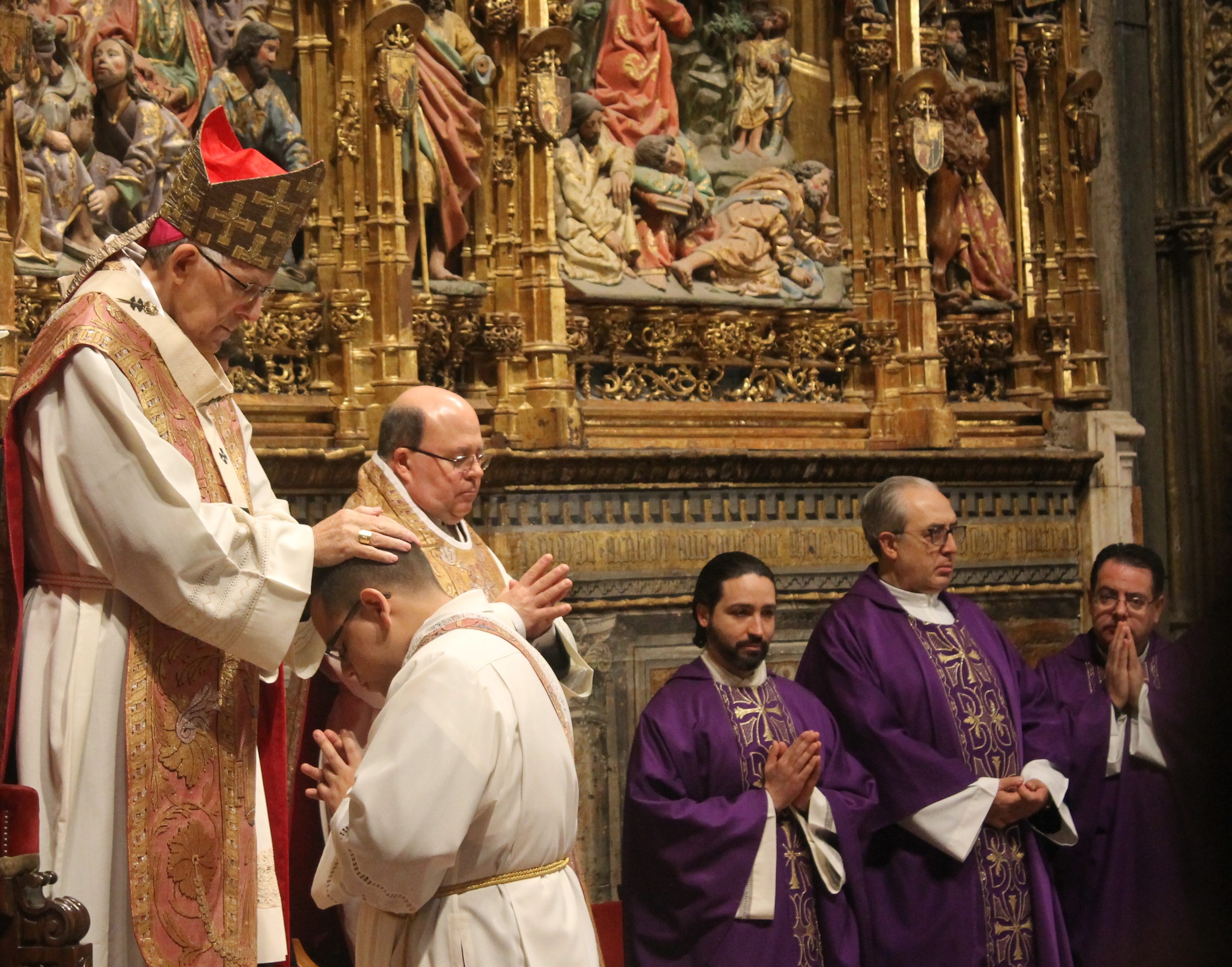 Junto a Don Braulio ha concelebrado el obispo emérito de Segovia, Mons. Ángel Rubio Castro. También ha estado acompañado, en la concelebración, por los formadores de los distintos seminarios diocesanos, junto con algunos vicarios episcopales, el cabildo primado y un nutrido grupo de sacerdotes que han acompañado a los neo-sacerdotes y nuevos diáconos.