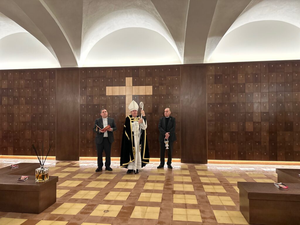 Mons. Francisco Cerro Chaves, arzobispo de Toledo, ha llevado a cabo, en la tarde de este 19 de marzo, la inauguración y bendición del ‘Columbario San Prudencio’, ubicado en la sala capitular de la iglesia de Santa Catalina. Estuvo acompañado por el párroco de santa María, la Mayor, D. Daniel L. Ramos y también por el arcipreste de la ciudad, D. Damián Ramírez, además del alcalde de la ciudad, de la comunidad de Hijas de la Caridad de esta institución, además de otros sacerdotes y personalidades de la ciudad. Cuenta con una capacidad para 920 ánforas, convirtiéndose así en el primer columbario de la ciudad y el más grande de la región, y del que puede hacer uso cualquier familia que desee optar por este tipo de enterramiento.