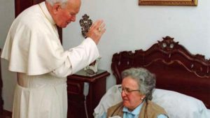 Uno de los momentos más emocionantes de su vida fue la bendición de san Juan Pablo II, que quiso visitarla, estando enferma en su propia habitación. Fue el 15 de diciembre de 1996.