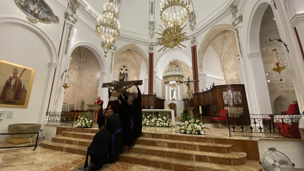 Los actos del sábado culminaron con un solemne Vía Crucis por las calles de Dalt Vila, con la imagen del Santísimo Cristo del Cementerio y el canto de los passos a cargo de la Escuadra des Amunts, de Sant Miquel de Balansat. En él participaron las siete cofradías de la ciudad de Eivissa, que partieron de la parroquia de San Pedro (El Convent) hasta la Catedral de Ibiza, donde estuvieron expuestas las imágenes titulares de las siete cofradías de Semana Santa de la ciudad.