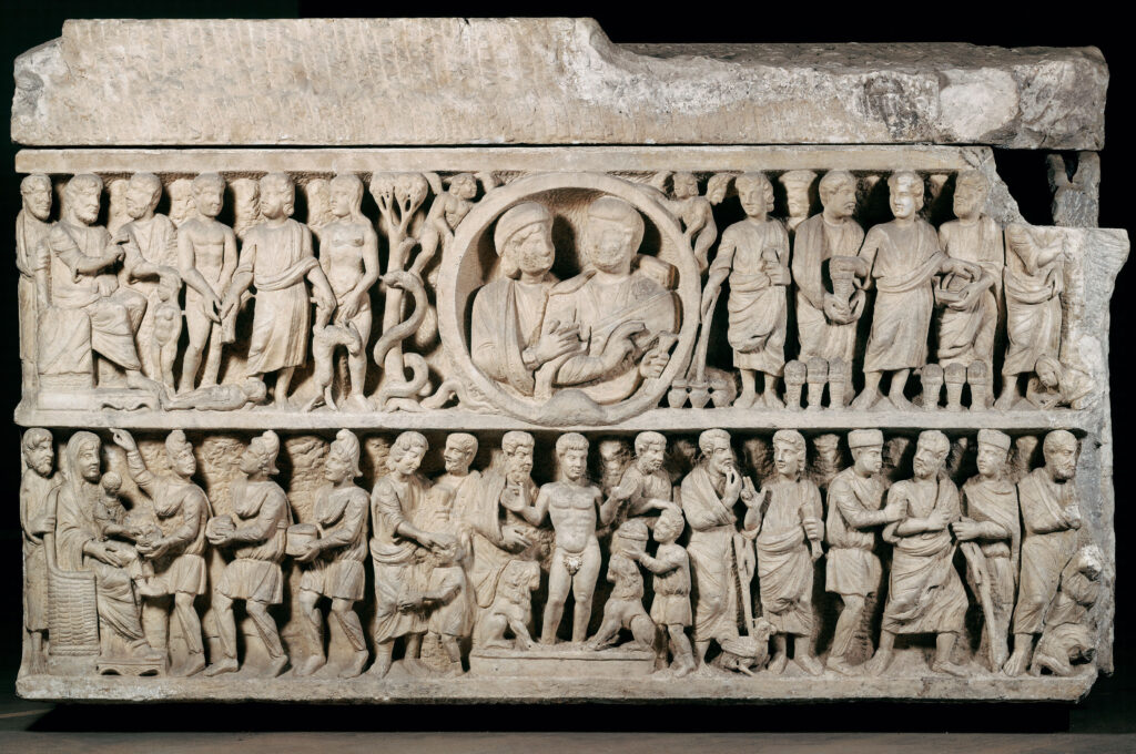 En la mitad del recorrido se ofrece un audiovisual mapping construido pedagógica y catequéticamente sobre el célebre “sarcófago dogmático” (año 340) conservado en los Museos Vaticanos. Se trata de una réplica que ha permitido de este modo que esta obra maestra salga por primera vez de Roma. El relieve de este sarcófago expresa la fe en la resurrección de aquellos esposos del siglo IV que allí fueron sepultados, y lo hace además poniendo en evidencia que Cristo es de la misma naturaleza que el Padre.