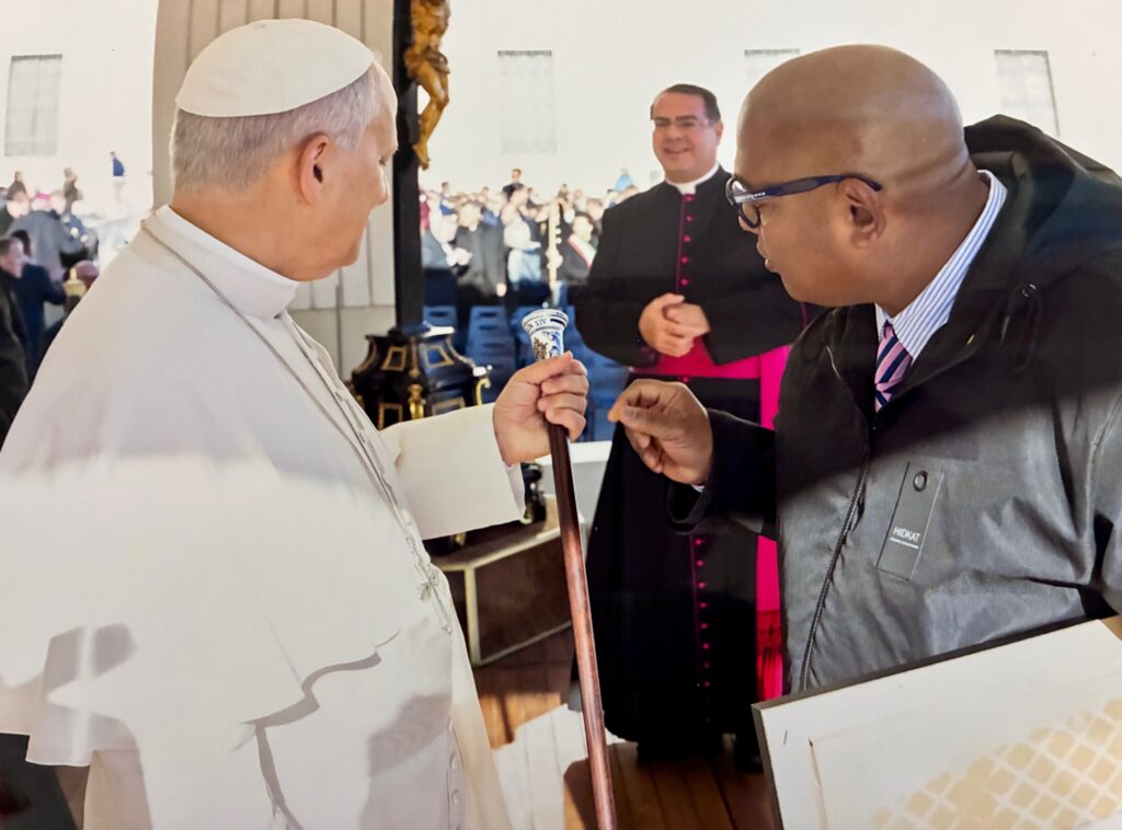 Durante la audiencia, el representante talaverano pudo presentar al Santo Padre la labor que desarrolla la ACdP, orientada a la formación de laicos comprometidos y a su presencia activa en la vida pública. En nombre del Organismo Autónomo Local de Cultura del Excmo. Ayuntamiento de Talavera de la Reina, D. Dixon Bryan Villegas hizo entrega al Pontífice de un obsequio institucional de especial simbolismo: un bastón de mando elaborado en cerámica de Talavera, declarada Patrimonio Cultural Inmaterial de la Humanidad. La pieza, trabajada artesanalmente por ceramistas de la ciudad, portaba el escudo pontificio y el nombre de León XIV, destacando el alto nivel artístico y la tradición ceramista talaverana.