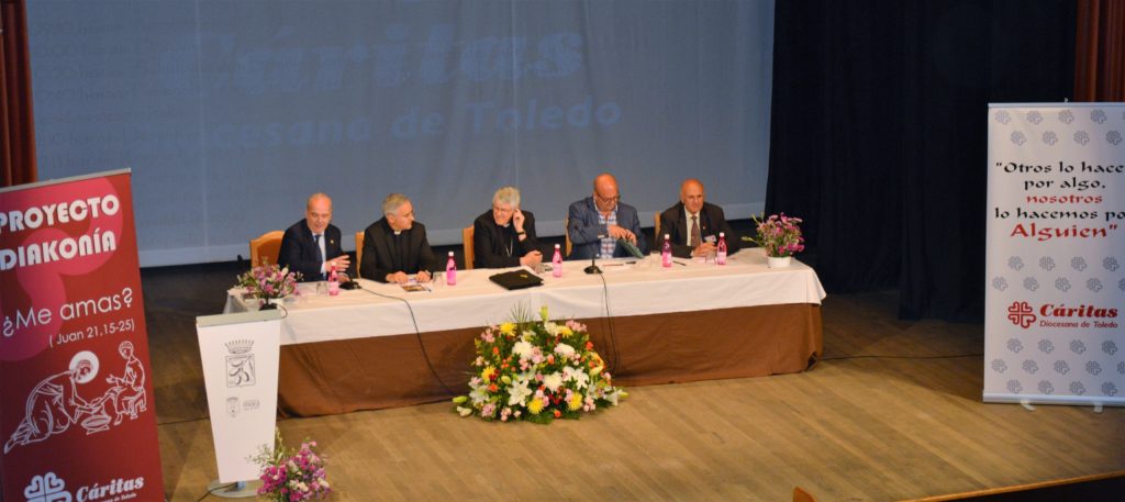 La Jornada, tras la oración de la mañana, se inició en el Teatro Principal de Mora y contó con el saludo de don Braulio, el director de Cáritas Diocesana, Antonio Espíldora, y el alcalde de Mora, Emilio Bravo.