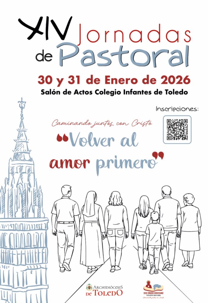 La Archidiócesis de Toledo celebrará los próximos 30 y 31 de enero de 2026 las XIV Jornadas de Pastoral, que tendrán lugar en el salón de actos del colegio diocesano de Ntra. Sra. de los Infantes de Toledo. Bajo el lema “Caminando juntos con Cristo. Volver al amor primero”, estas Jornadas se presentan como una invitación abierta y concreta a todo el Pueblo de Dios —sacerdotes, vida consagrada y laicos— a compartir unos días de comunión, formación, oración, celebración y convivencia.